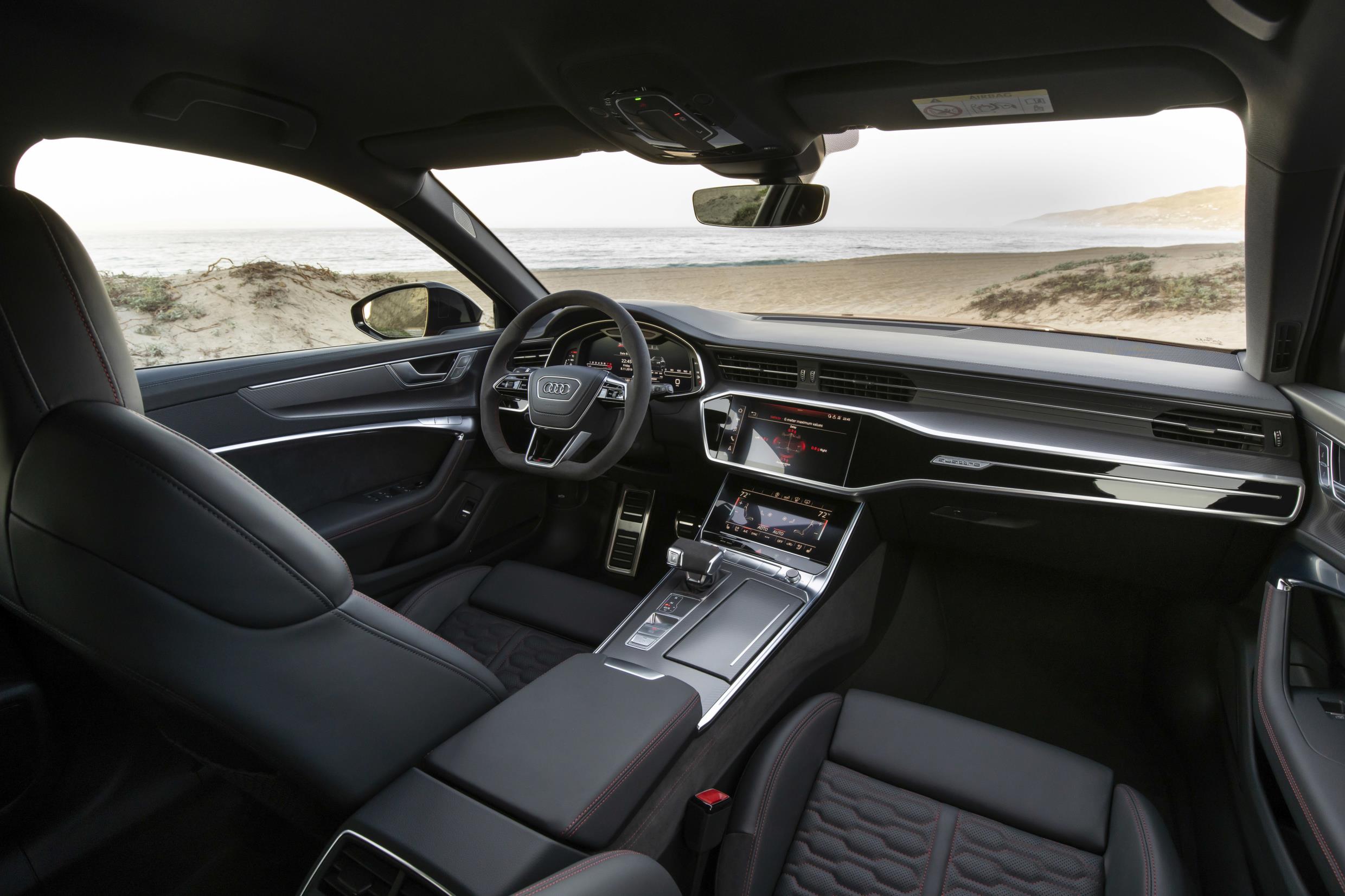 RS 6 and RS 7 Sportback Carbon Black models are marked out internally by striking carbon twill inlays and an RS design package that adds to the luxury feel through additional inserts in either grey Fine Nappa leather or grey Alcantara for areas such as the centre console sides and door armrests.